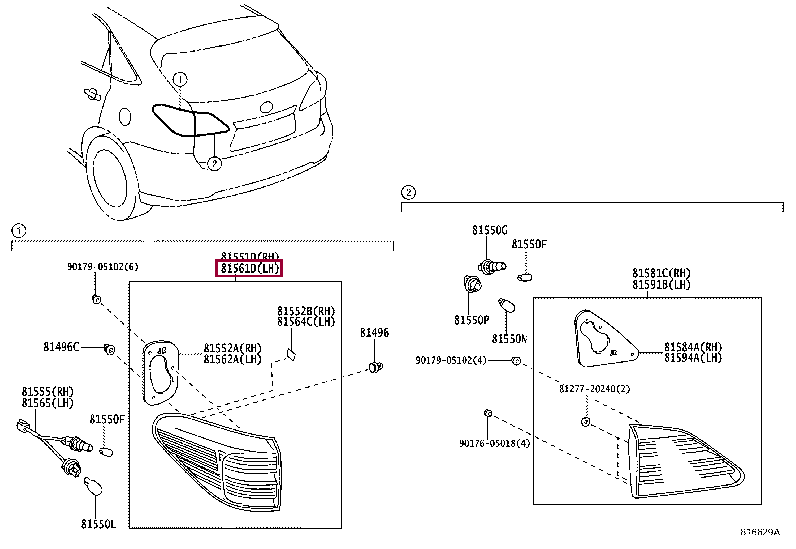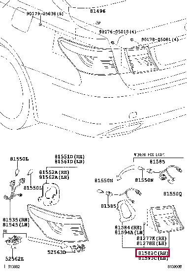 Фонарь задний левый для LX570 (Luxury 8S, Premium)