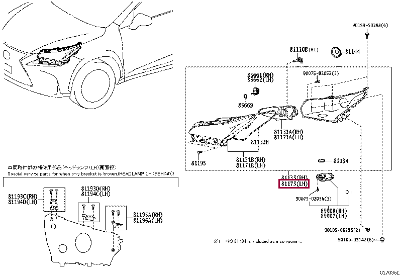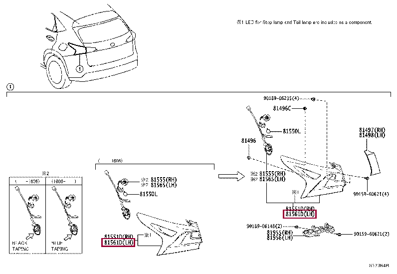 Фонарь задний левый внутренний для NX200, NX200t, NX300h
