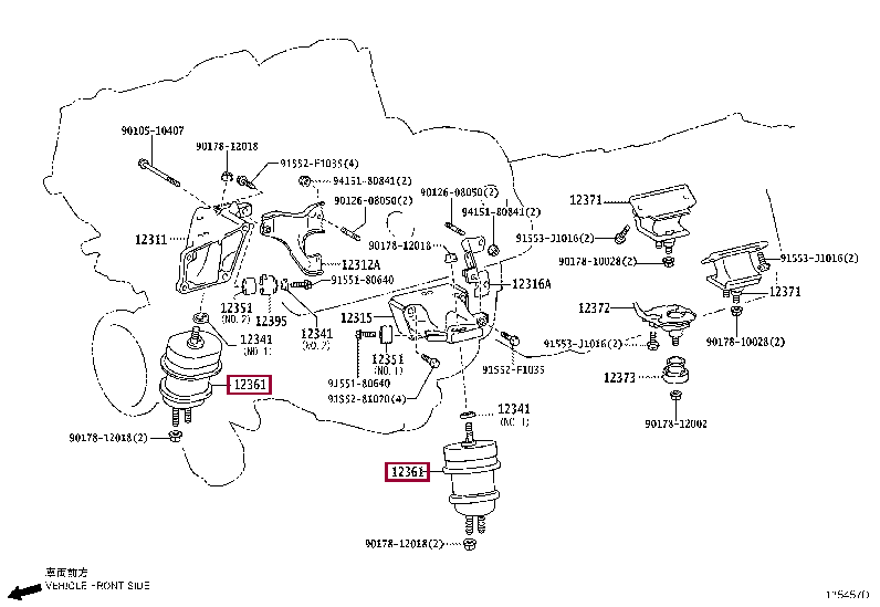 Опора ДВС передняя для LS460L, LS460, LS600HL, LS600h