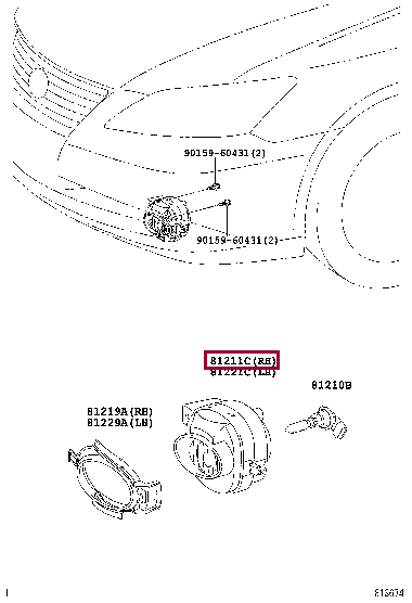 Фара противотуманная правая для ES250, ES350, RX200t, RX350