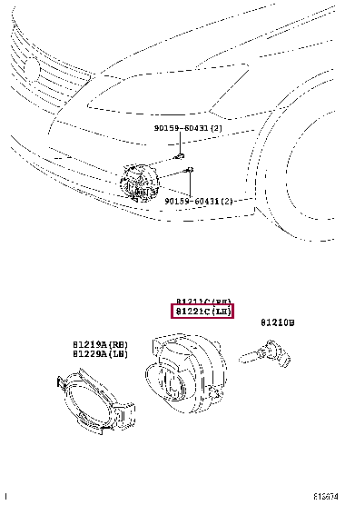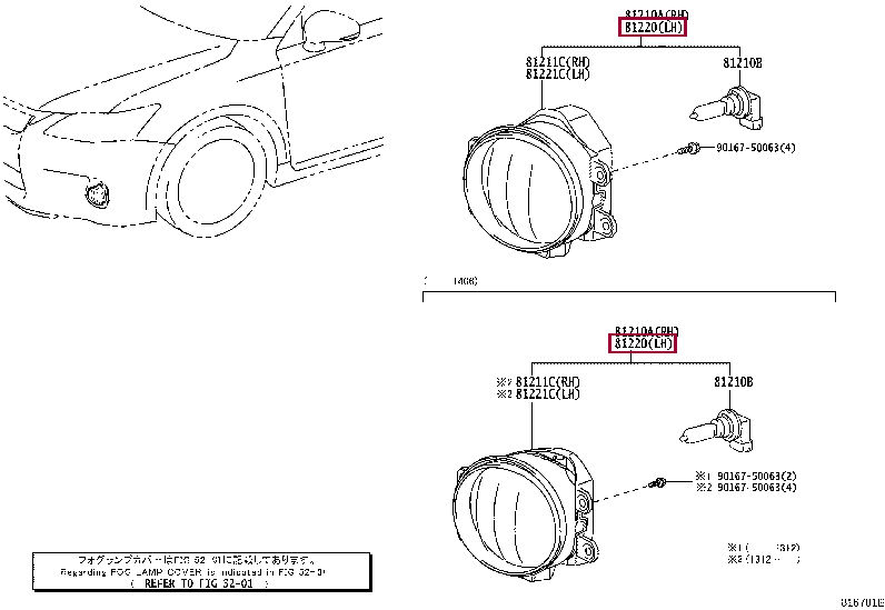 Фара противотуманная левая для ES250, ES350, RX200t, RX350