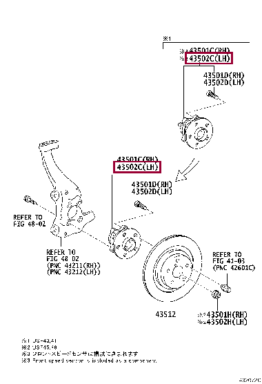 Ступица переднего колеса, правая для LS460L, LS600HL, LS460, LS600h